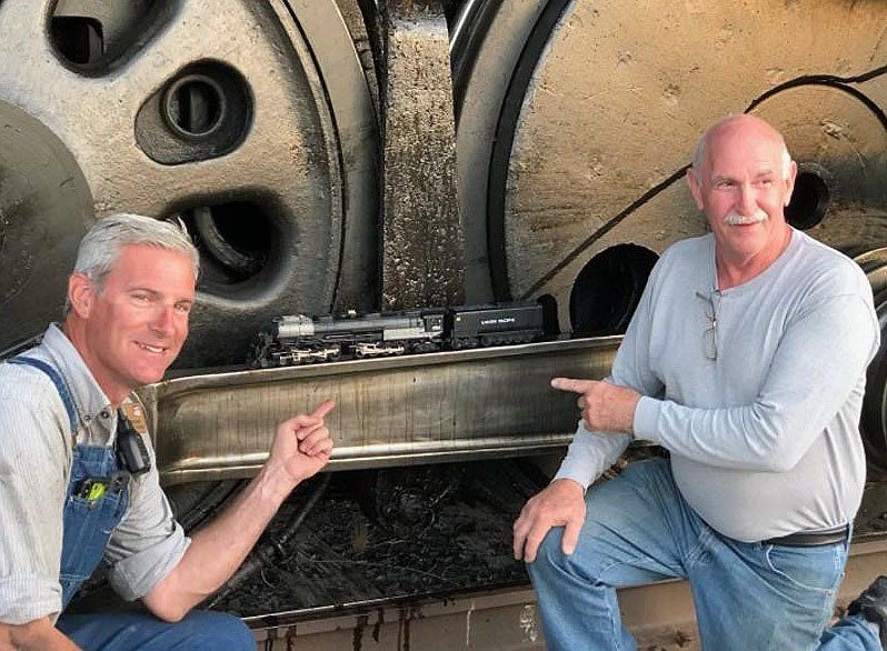 "Auctioneer Fred" presents our special guest speaker Ed Dickens, Senior Manager of Union Pacific's Heritage Operations, with an S-gauge replica of a Union Pacific hopper car. Following the banquet dinner Dickens regaled the attendees with photos and commentary of the Big Boy 4014 restoration process. His talk included unpublished behind-the-scenes information and the many challenges the team encountered when rebuilding the Big Boy since replacement parts were not available and had to be fabricated in the Cheyenne facility or contracted to outside foundries and forge shops.